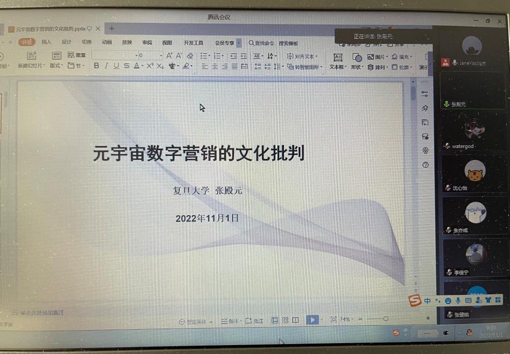 11月1日上午,应营销与物流管理学院邀请,复旦大学新闻学院张殿元教授在线作了题为“元宇宙数字营销的文化批判”的讲座。讲座由营销与物流管理学院副院长姚杰教授主持。营销与物流管理学院部分师生参加讲座。