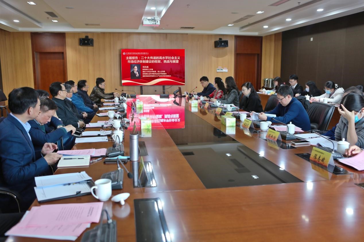 12月11日,江苏现代财税治理协同创新中心举办“中国式现代化经济体系”高层论坛。国家高端培育智库长江产业经济研究院理事长、院长刘志彪教授作了题为“二十大传递的高水平社会主义市场经济体制建设的框架、挑战与展望”的报告。