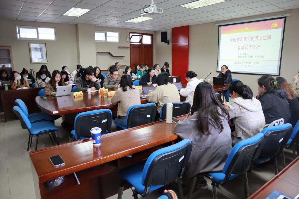 4月6号下午,南京大学刘怀玉教授应邀为马克思主义学院师生作题为“中国式现代化的若干空间哲学话语分析与重建”的学术报告。报告会由马克思主义学院院长卓承芳教授主持。学院全体研究生以及部分教师代表聆听报告。