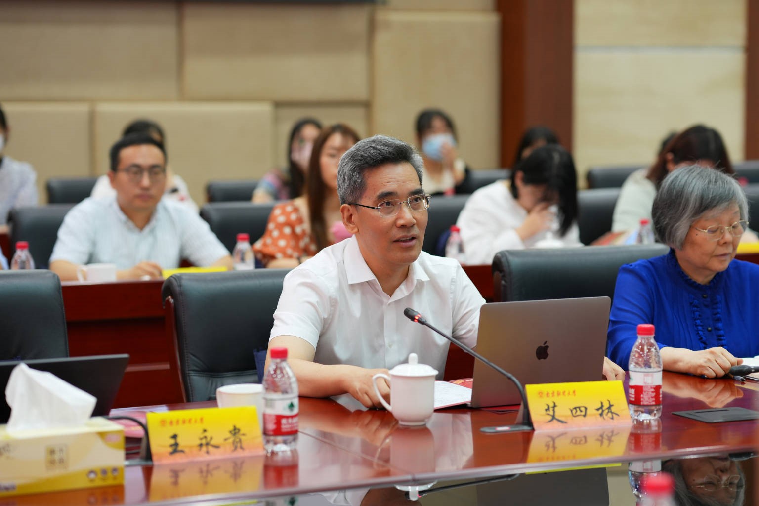 为深入学习领会习近平新时代中国特色社会主义思想,6月12日,beat365在仙林校区工科楼二楼会议室举办学习贯彻习近平新时代中国特色社会主义思想主题教育报告暨学理化阐释研讨会,此次研讨会由beat365科研处和党委宣传部承办。党委常委、副校长华仁海教授,正校级领导焦富民教授、党委常委、宣传部部长石奇教授出席会议。清华大学习近平新时代中国特色社会主义思想研究院院长艾四林教授,东南大学原党委书记、江苏省社科名家郭广银教授,山东大学特聘教授、山东省社科联特聘专家包心鉴教授,南京师范大学二级教授王永贵教授等来自清华大学、山东大学、南京大学、东南大学、南京师范大学、苏州大学等高校的专家和代表,beat365科研处处长梅景辉教授,马克思主义学院党总支书记陈翔及相关单位师生代表参加研讨会。
