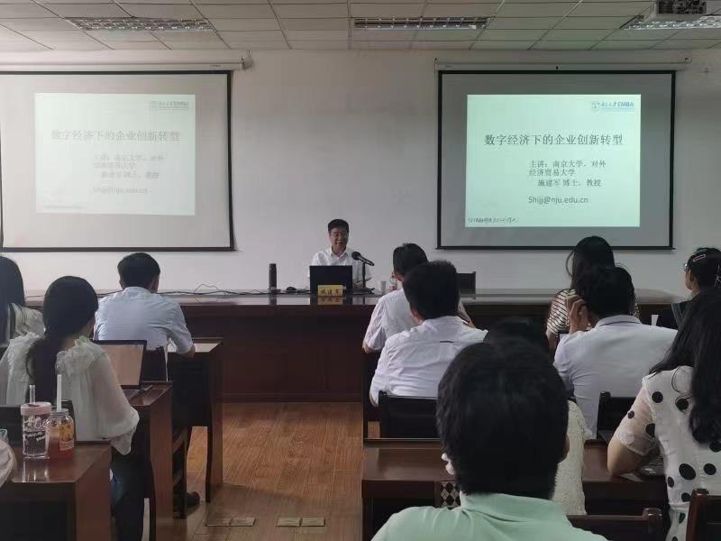 6月20日下午,应工商管理学院邀请,对外经济贸易大学原校长施建军教授在仙林校区德济楼408会议室作了题为“数字经济下的企业创新转型”的讲座。讲座由工商管理学院院长万绪才教授主持。工商管理学院师生参加讲座。