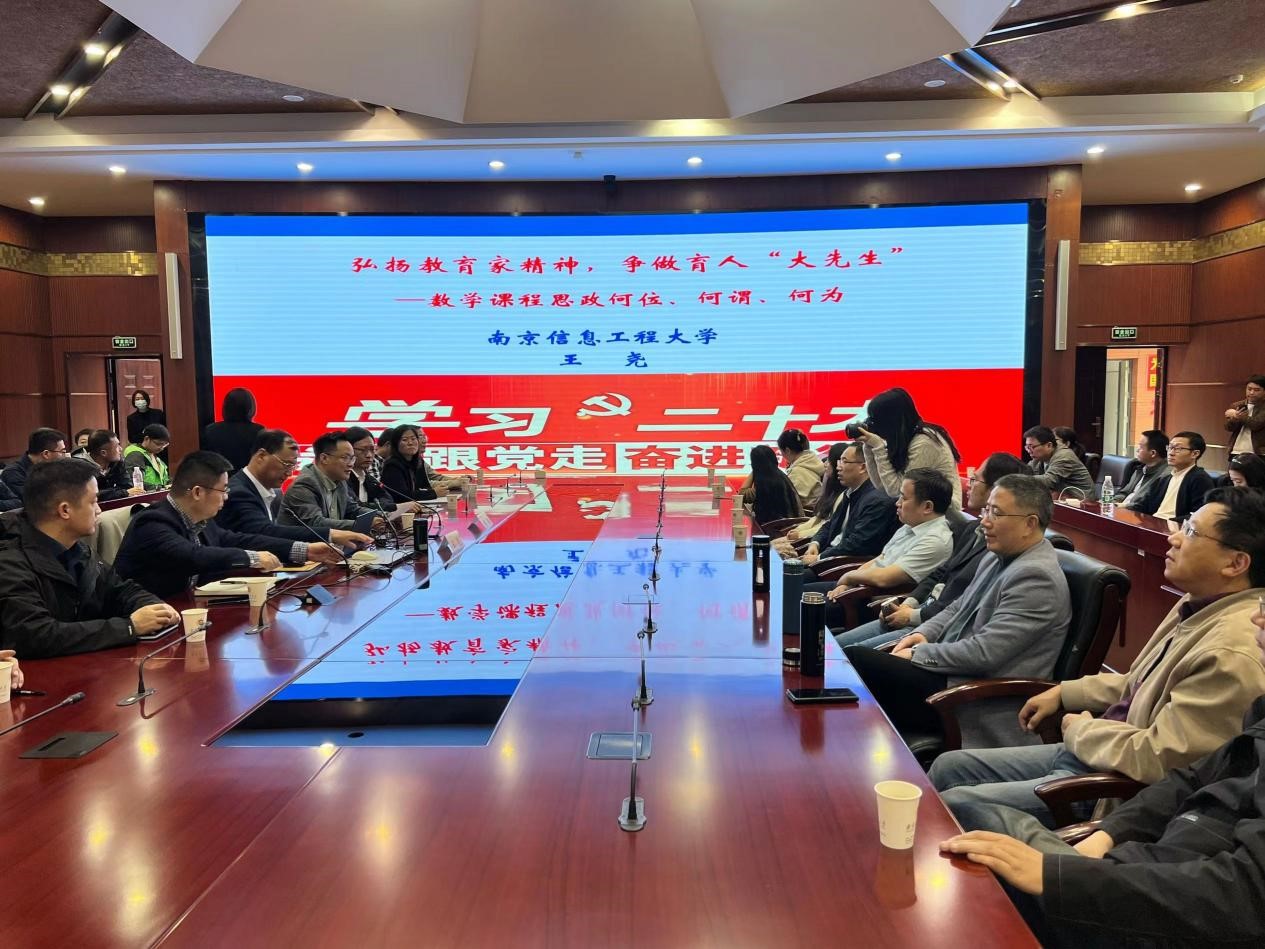 4月11日下午,应应用数学学院邀请,南京信息工程大学原党委副书记、副校长(正校级)、博士生导师王尧教授在仙林校区工科楼二楼报告厅作主题为“大力弘扬教育家精神,争做新时代育人‘大先生’——数学课程思政何谓、何位、何为”的学术报告。应用数学学院党政领导、全体教师、部分研究生和本科生参加学习。报告由beat365副校长张炳教授主持。