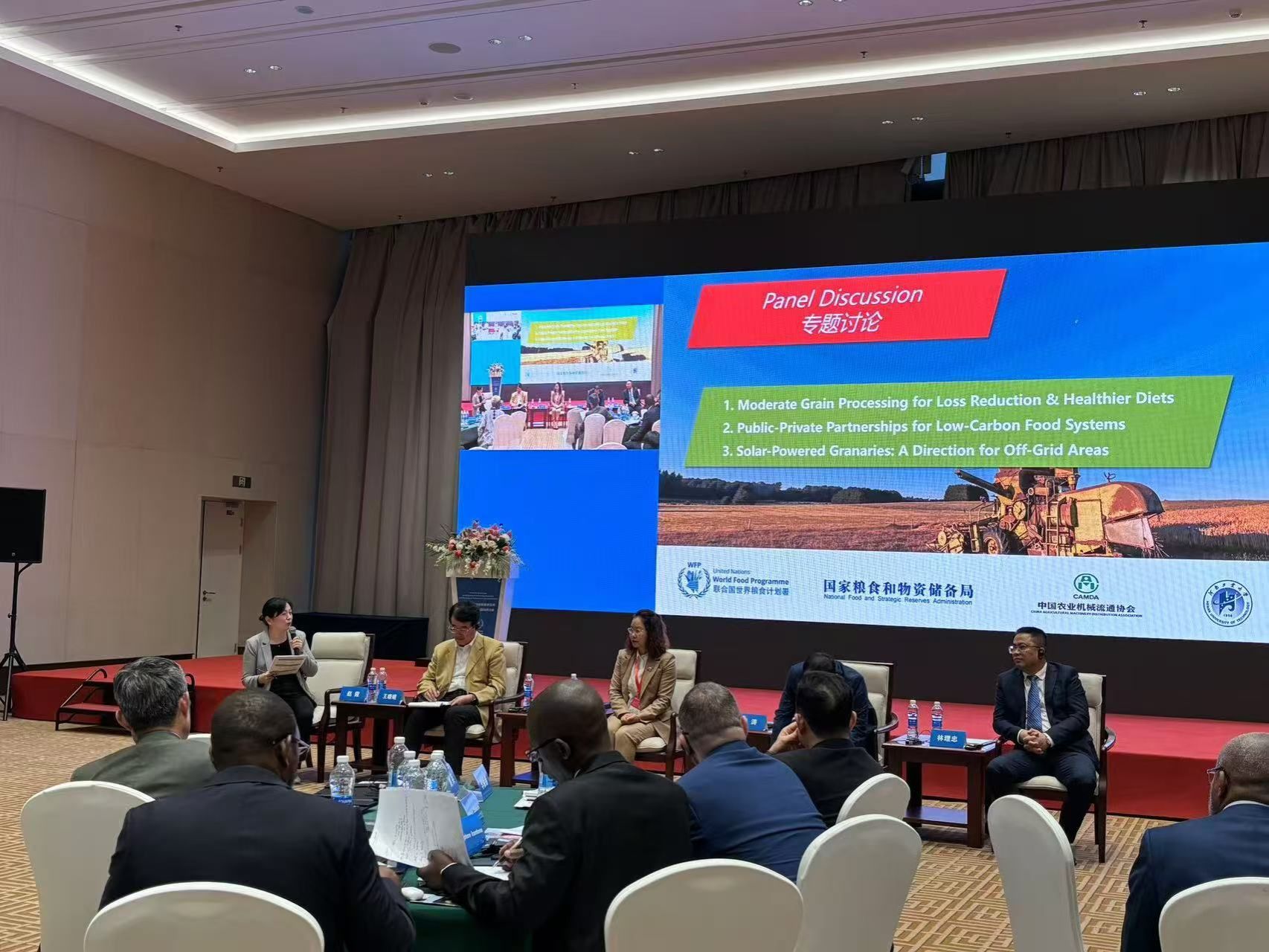 会议主要围绕“规模化粮食储存的产后减损方法”“小农产后减损解决方案”和“产后减损管理的绿色转型与可持续实践”三个主题展开。赵霞教授作为“产后减损管理的绿色转型与可持续实践”环节的主持人,聚焦粮食产后减损领域的技术创新和绿色发展,引导专家就粮食适度加工对减损和健康饮食的影响、低碳粮食系统的公私合作模式,以及光伏粮仓在离网区域的应用等前沿话题进行深入研讨,与会嘉宾踊跃提问并参与讨论。