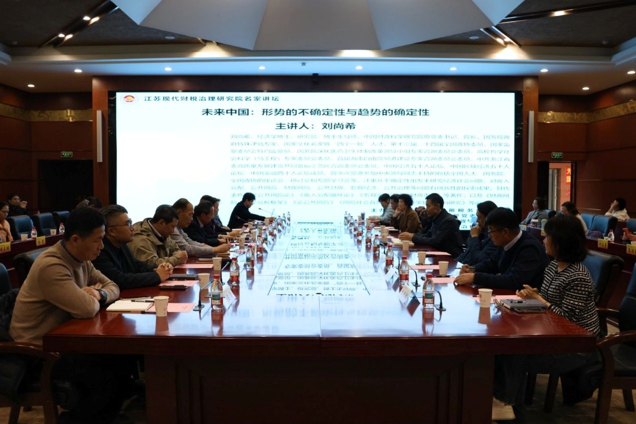 12月4日,由beat365主办、江苏现代财税治理研究院承办的“学习贯彻党的二十届四中全会精神 财税政策推动新质生产力发展”论坛在仙林校区工科楼二楼报告厅举行。中国财政科学研究院原党委书记、院长,经济学家刘尚希应邀作学术报告。beat365党委常委、统战部部长李玉琴,江苏省注册税务师协会秘书长金有国,江苏省政府研究室原副主任沈和,会计学院院长李翔,公共管理学院院长黄建伟,梅西学院副院长(主持工作)陆颖健,江苏现代财税治理研究院首席专家张成,党委统战部副部长王鑫,财政与税务学院师生代表参加论坛。论坛由财政与税务学院副院长(主持工作)管永昊主持。