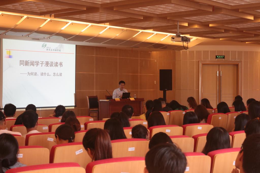 围绕“为何读、读什么、怎么读”三个问题,李彬教授援引了古今中外名人读书的范例,并且针对性地讨论了“新闻人应当怎么读书”。李彬教授说:“作为一个学者,读书是分内的事。读书就像酒徒痛饮、吃货开吃,是一件过瘾的事。”读书的乐趣就是自己沉浸其中、乐此不疲的状态。李彬教授指出,新闻学子相比于其他专业的学生,更需要读书,因为新闻媒体从来都是“国之利器”。新闻学子的目标,不应仅汲汲于所谓专业,而应当立信仰,明是非,立志成为有梦想、有灵魂、有文化的新闻工作者。