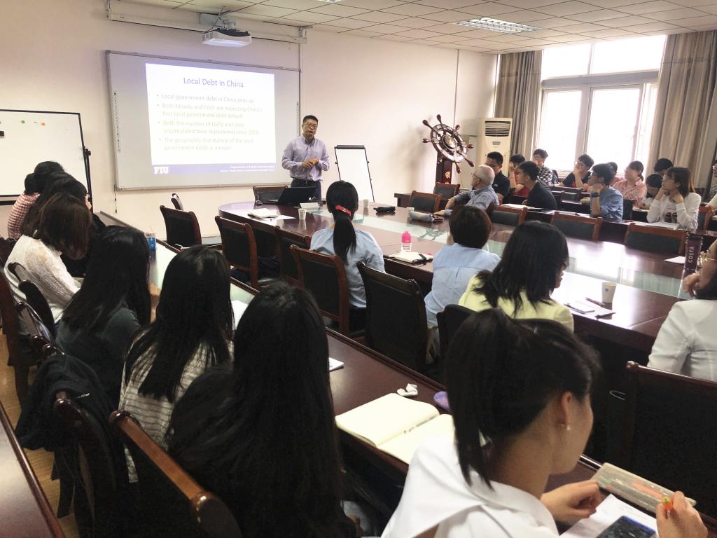 5月30日,应公共管理学院邀请,美国康涅狄格州大学教授Mark Robbins、美国佛罗里达国际大学教授郭海等来beat365仙林校区德济楼508会议室作学术报告,报告由公共管理学院院长黄斌主持。学院部分教师、本科生和研究生聆听了报告。