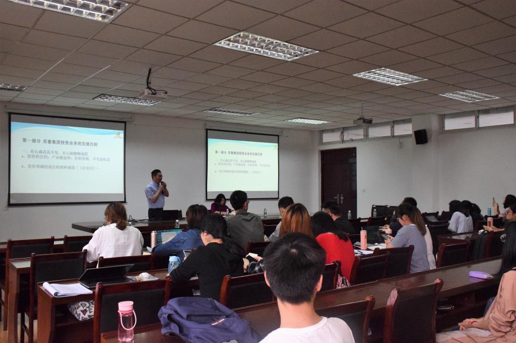 薛炳海总经理介绍了苏豪控股集团有限公司投资业务活动的发展历程,介绍了金融环境的变化、基本的金融知识以及私募股权基金的运作方式。他以大量真实的投资案例介绍了募、投、投后管理和退四个环节。最后,薛炳海总经理介绍了自己的从业体会,即区域比产业更重要,协作比专业更重要。薛炳海总经理的实践经验丰富,讲解富有激情,使与会师生对私募股权基金有了一定了解,有助于师生们对创新创业的深度理解。