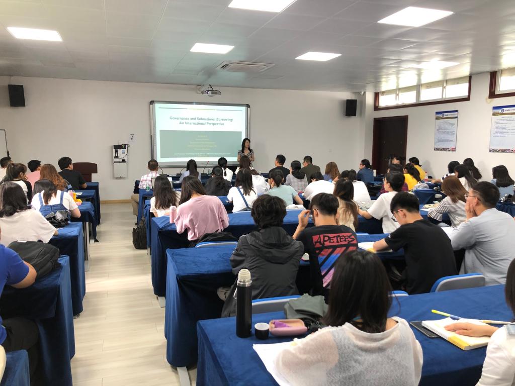 孙瑞副教授作了题为“Governance and Subnational Borrowing: An International Perspective”的学术报告。她指出当前研究表明好的政府可以促进公平、参与度、透明度、效率、廉价和持久性。关于政府能力水平能否影响州政府和地方政府的信用评级,孙瑞副教授基于34个国家270个政府层级2005-2016年的数据1989个样本量对该问题进行国际视野的验证。其中52%的样本来自21个发达国家,48%的样本来自13个发展中国家,并且87%为联邦制国家,13%为集权制度国家。研究发现,政府的效率水平、人口规模显著正向影响地方政府信用评级、政治稳定性、债务率显著负向影响政府的信用评级。她的研究对我国地方政府发债和债务管理提供了国际视角,具有较高的学术价值和现实意义。
