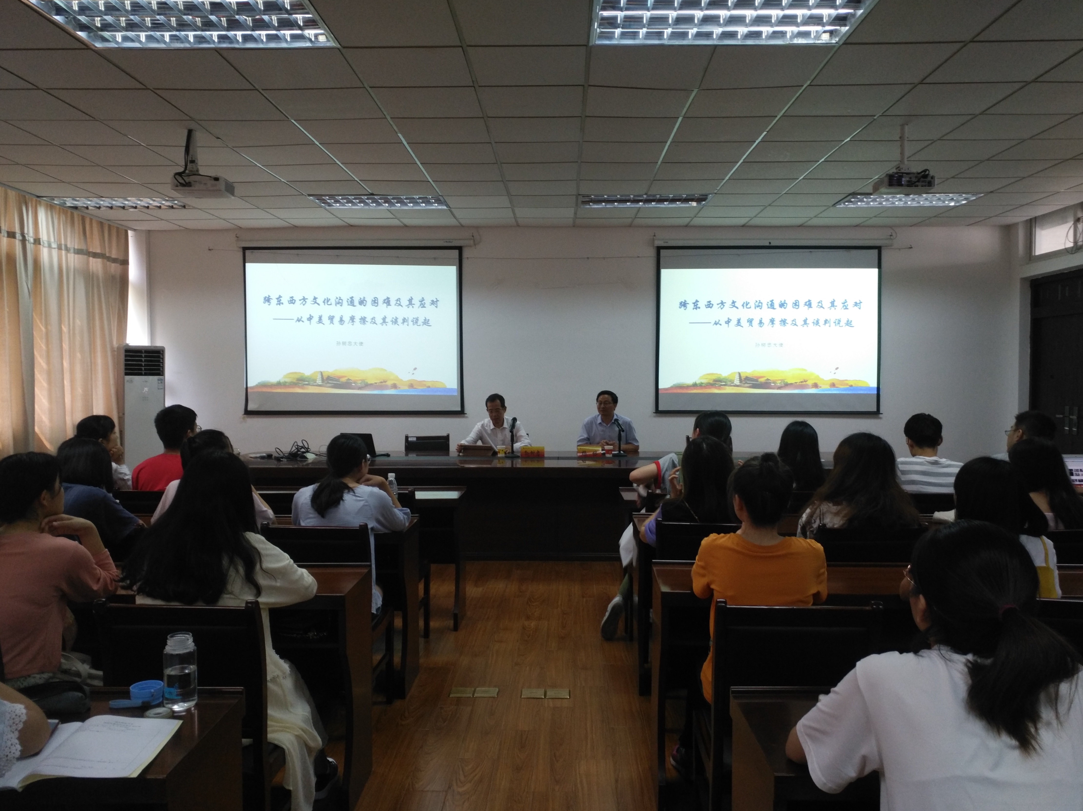 9月8日下午,应工商管理学院邀请,中国原驻摩洛哥大使、南京大学顾问教授孙树忠在仙林校区德济楼408会议室作了“跨东西方文化沟通的困境及其应对——从中美贸易摩擦及其谈判说起”的学术报告。报告会由工商管理学院院长杨林主持,学院部分教师和学生参会聆听了此次报告。