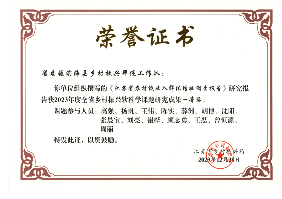 杨帆参与撰写的《江苏省农村低收入群体增收调查报告》获奖